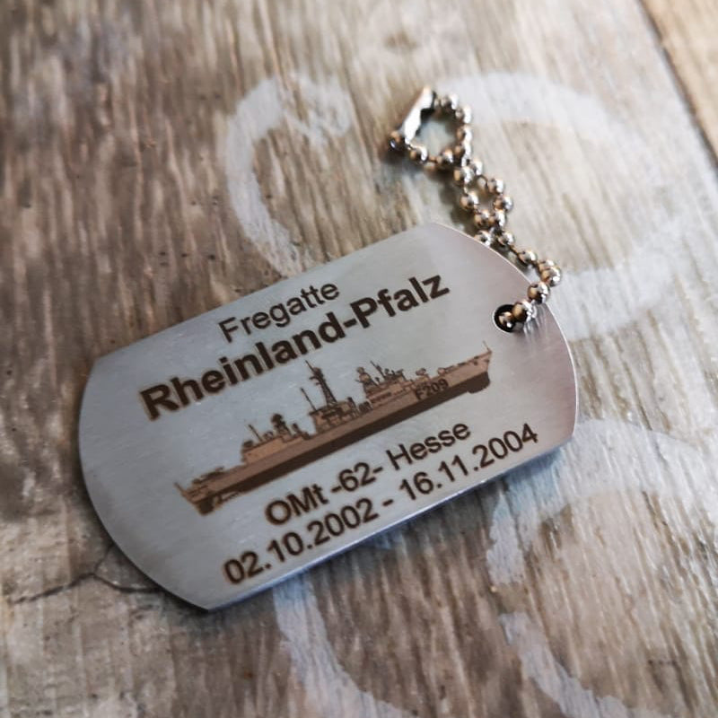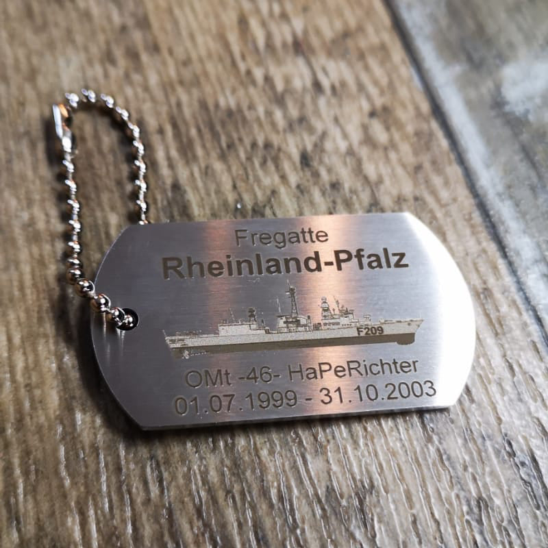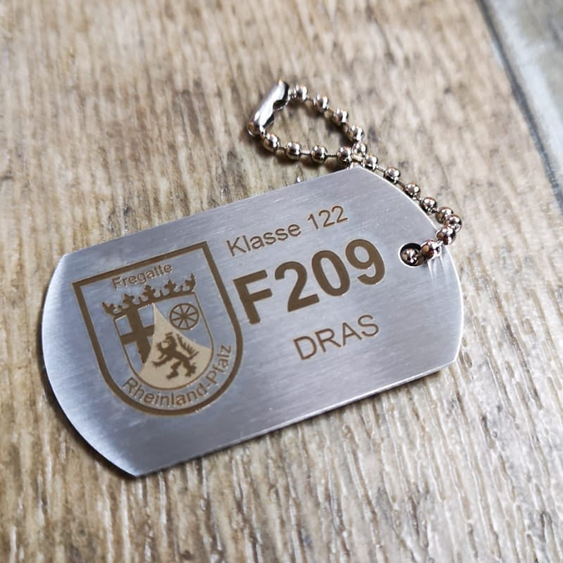 F209 FREGATTE RHEINLAND PFALZ Schlüsselanhänger, Dogtag - Edelstahl, PERSONALISIERT