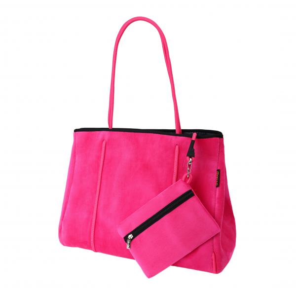 Un pequeño clutch con cremallera está unido al bolso con un mosquetón, ideal para guardarlo.