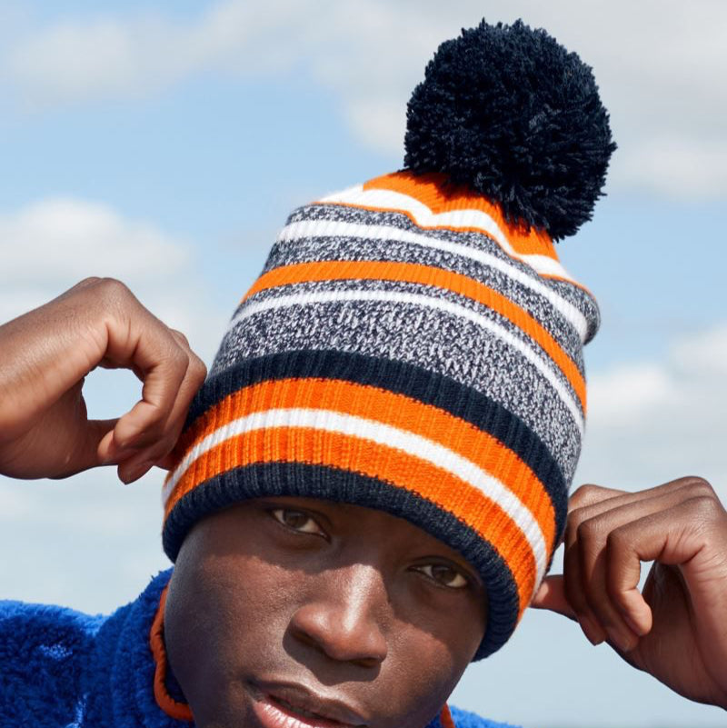 Einfarbiger Pompon, breiter Umschlag, Streifen-Design, doppelt gestrickt, weich und warm, TearAway Label, Handwäsche, nicht trocknergeeignet, nicht chemisch reinigen