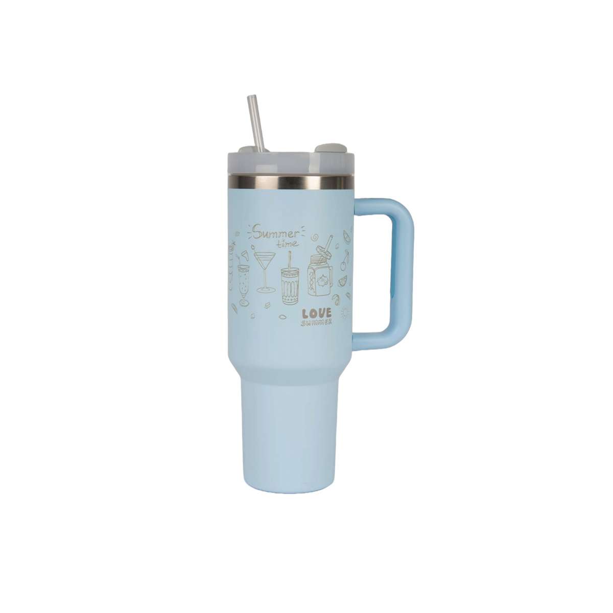Farbe Baby Blue, matte Oberfläche, mit Trinkhalm