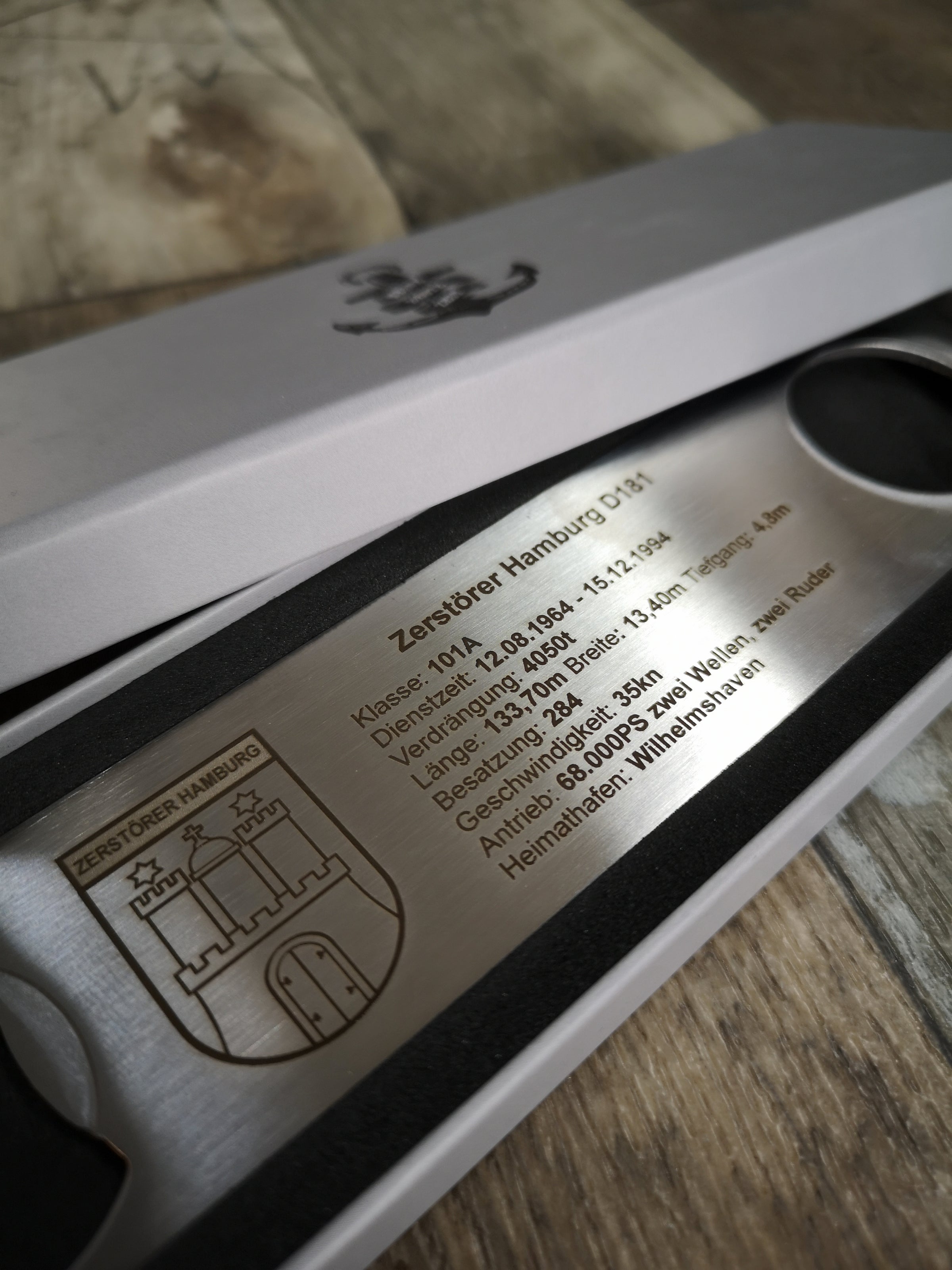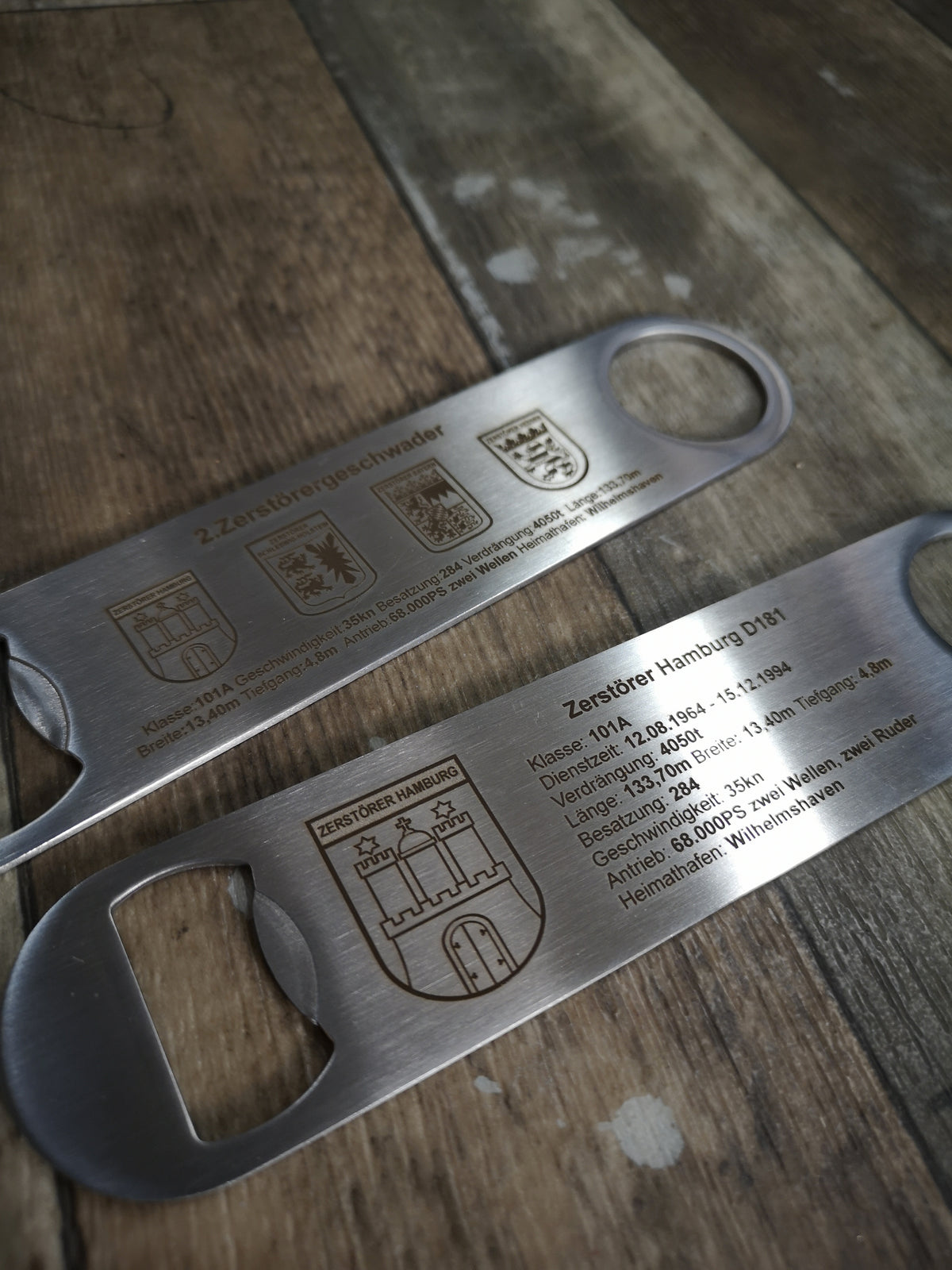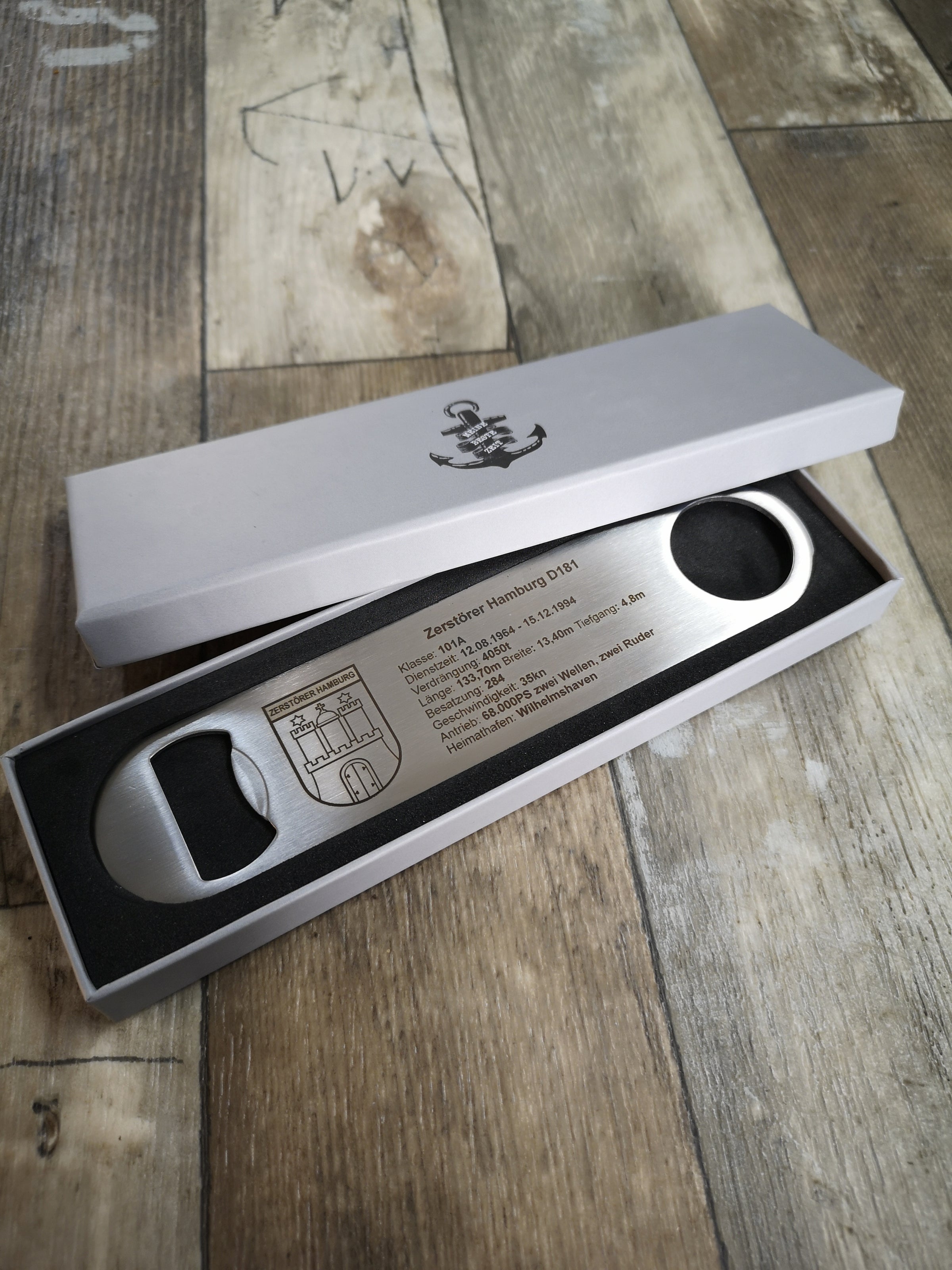 D181 Zerstörer Hamburg, Flaschenöffner mit Lasergravur