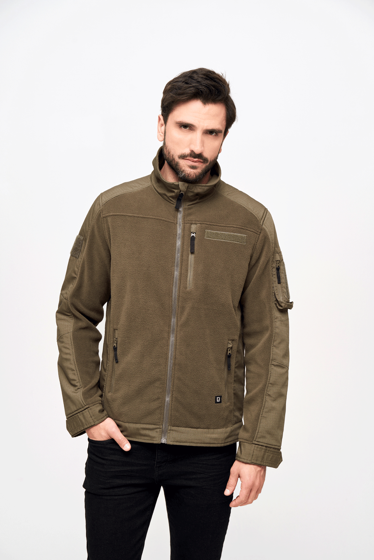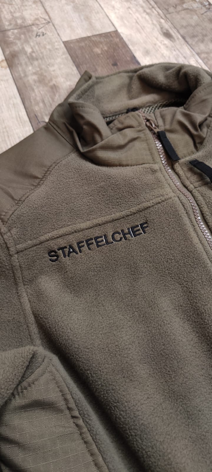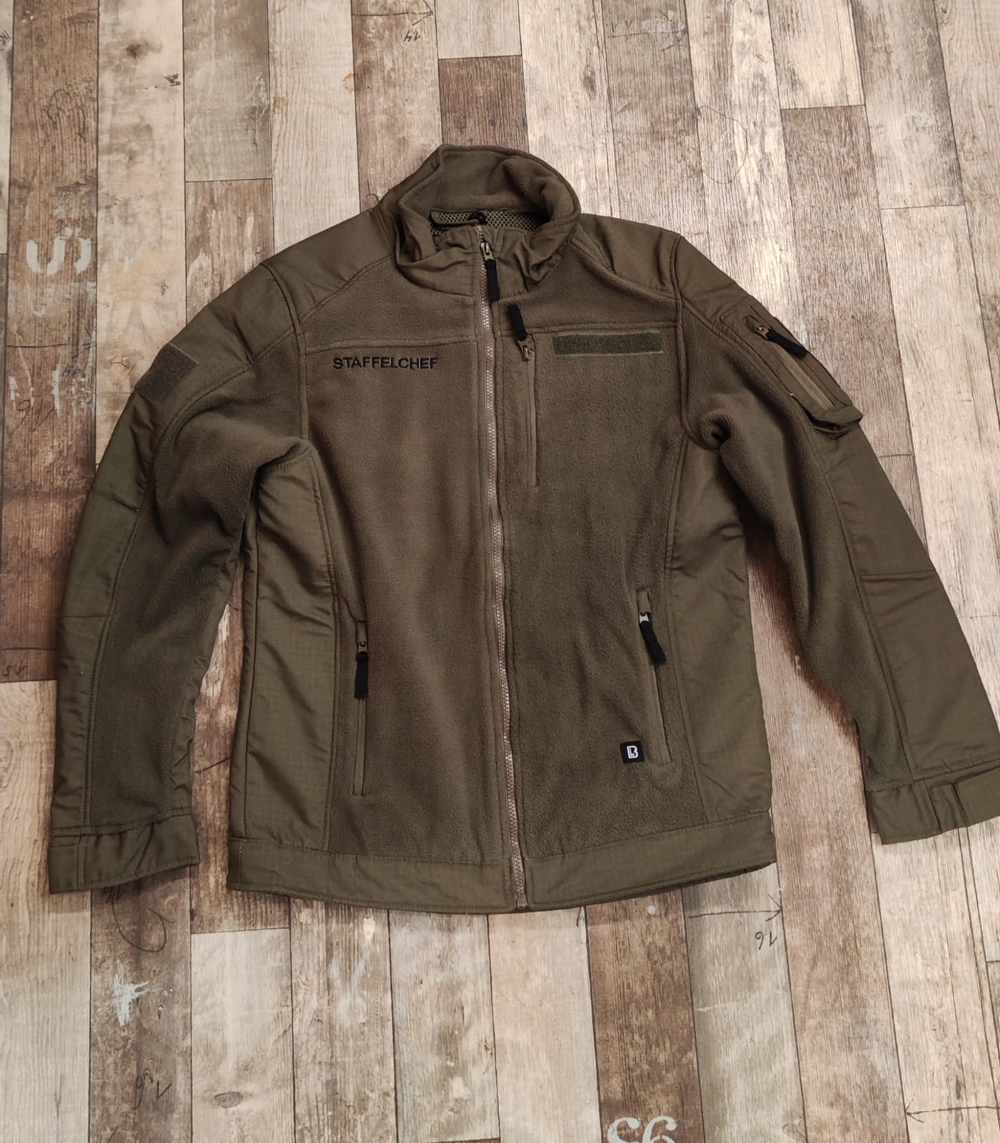 Chaqueta polar ripstop negra, con bordado en el pecho y la espalda.
