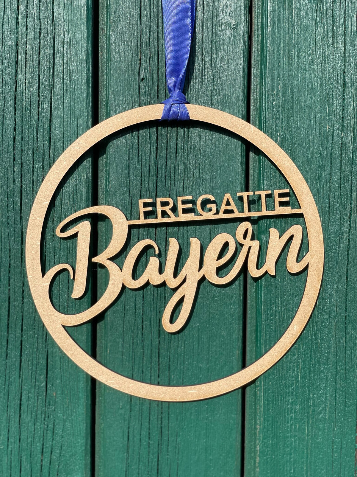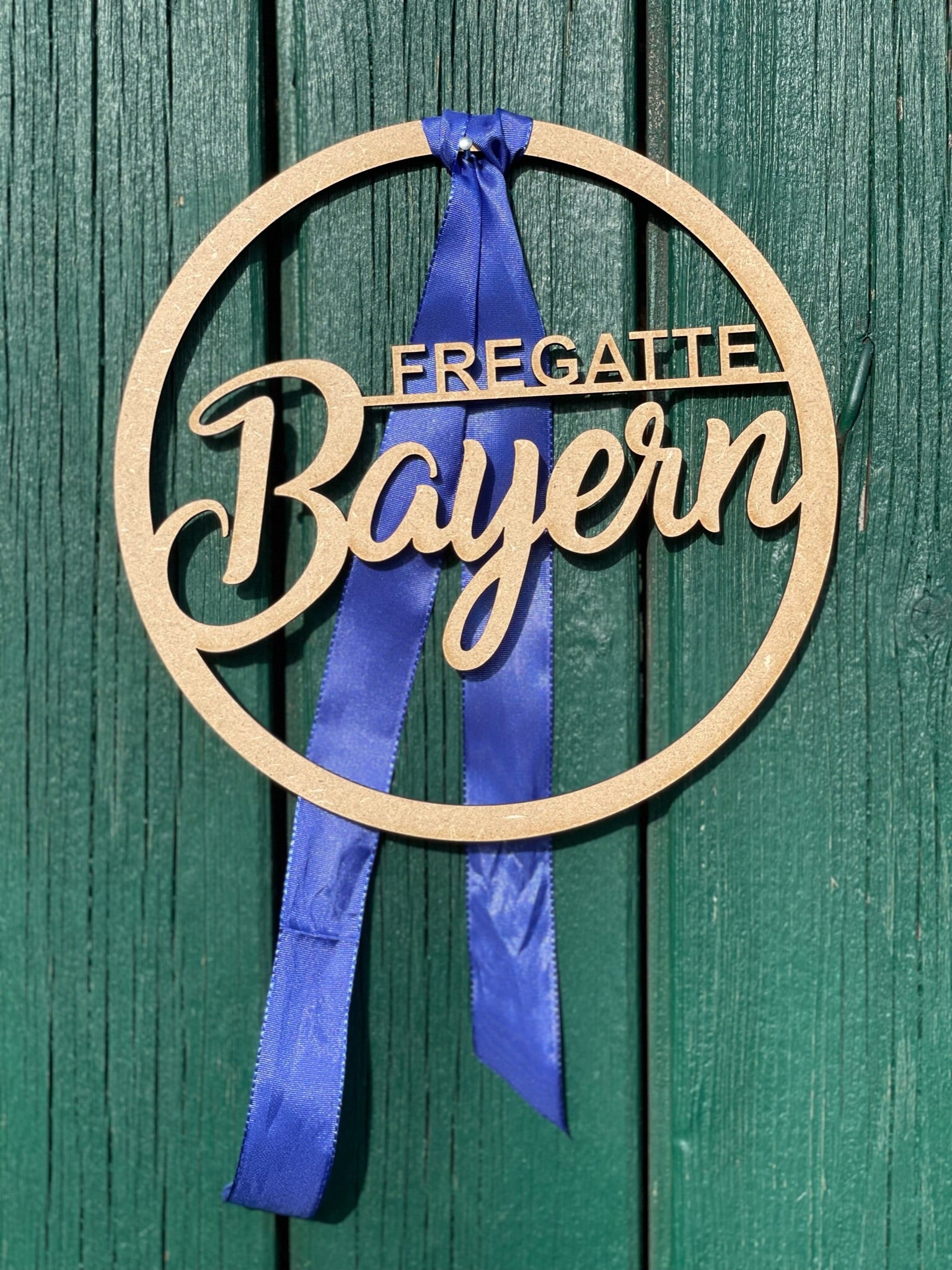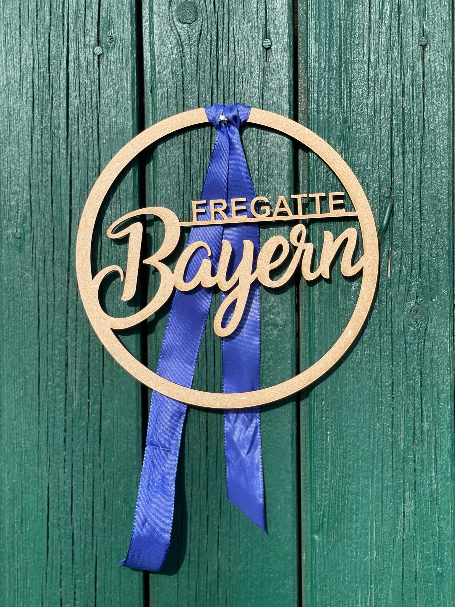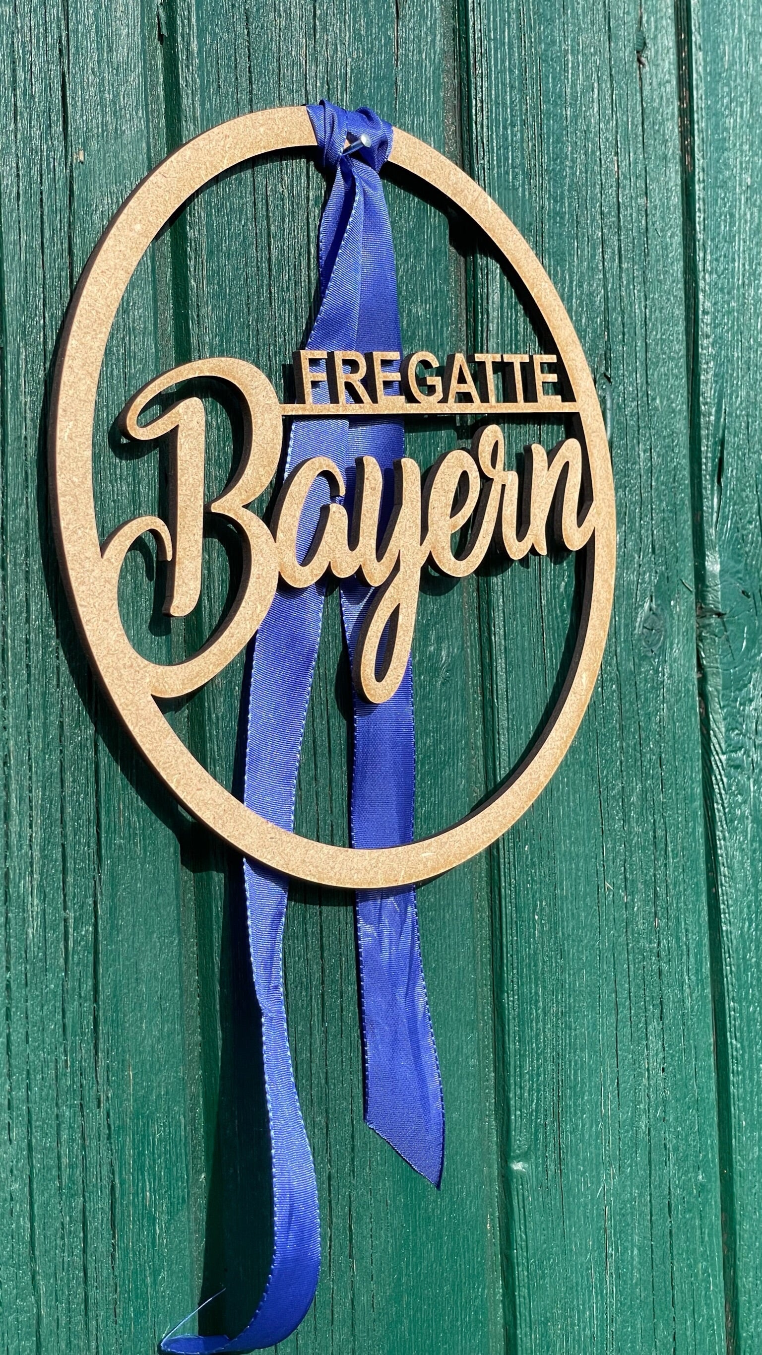 Este elegante anillo, fabricado en tablero de fibra de madera de 3,2 mm de espesor, es un recuerdo especial de la fragata Bayern. Con sus letras recortadas y su diseño único, no solo es una hermosa pieza decorativa, sino también un regalo ideal para los graduados de la fragata. Un accesorio verdaderamente especial.