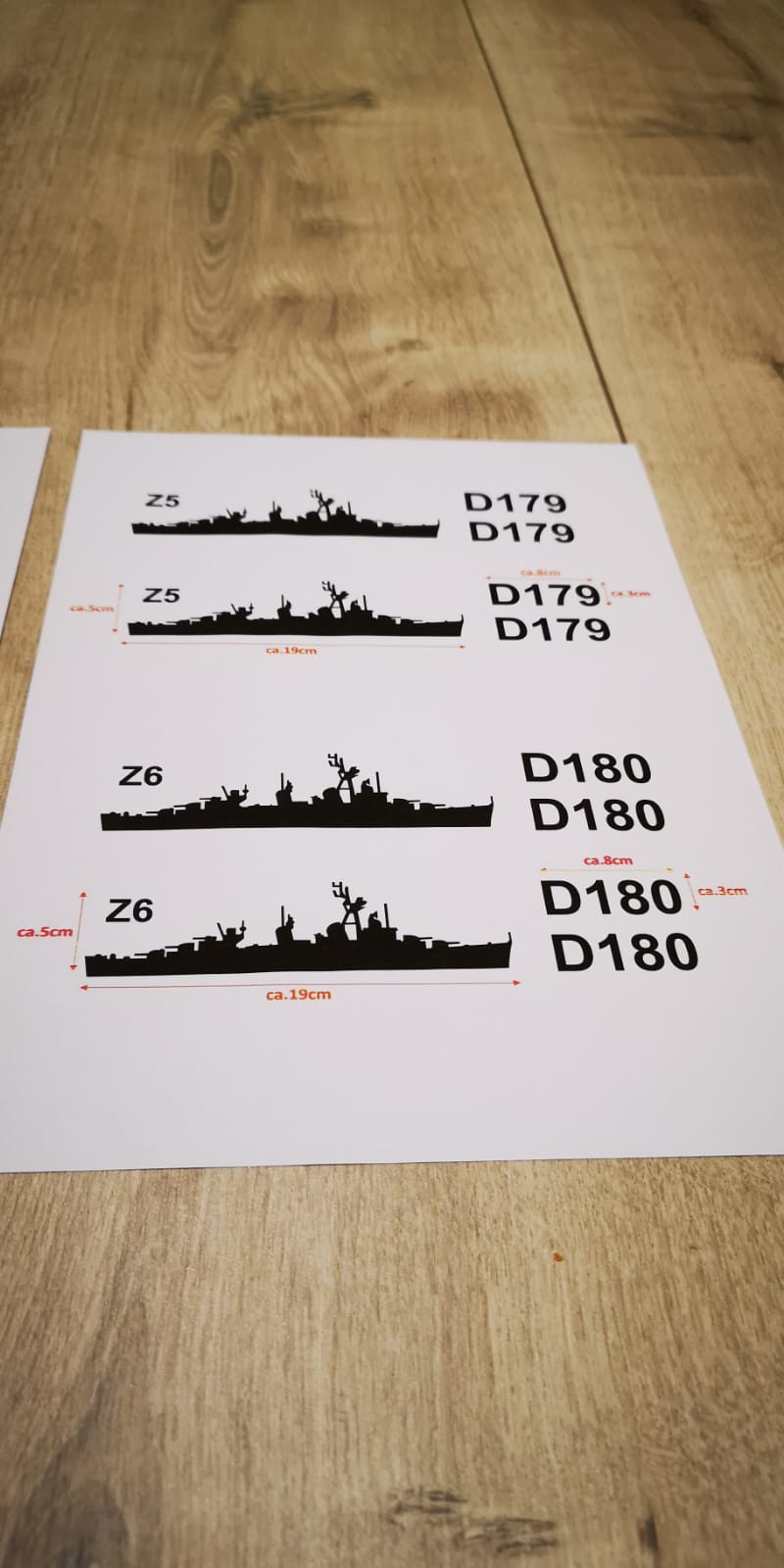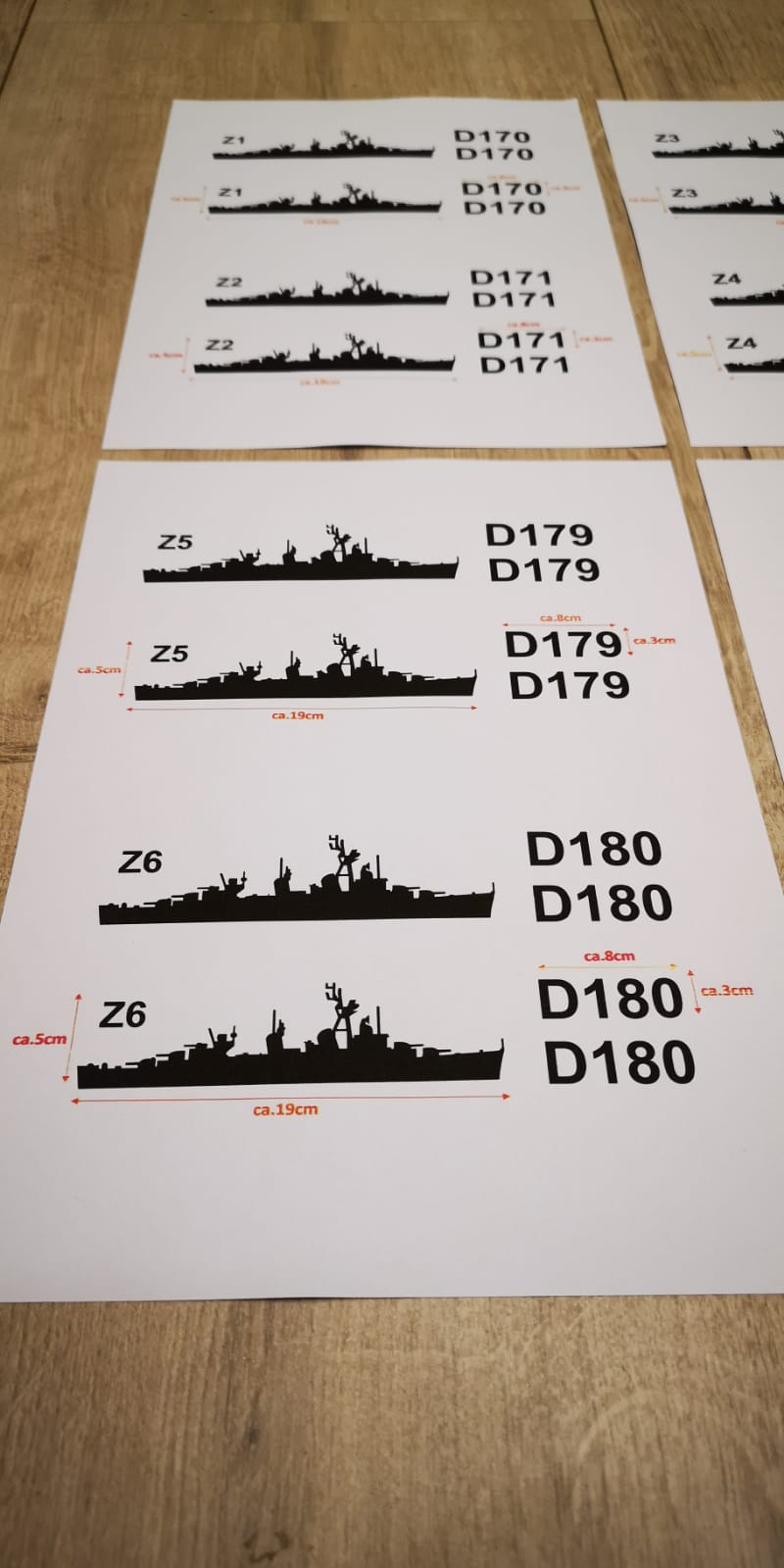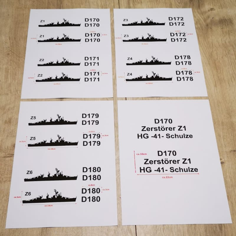 Aufkleber Zerstörer Fletcher- Klasse Z1-Z6 plus 2x Hullnumber