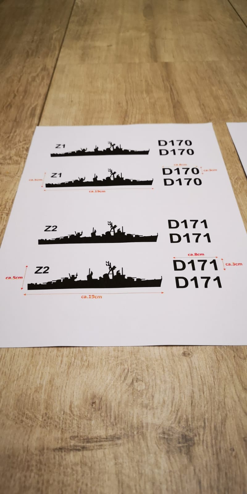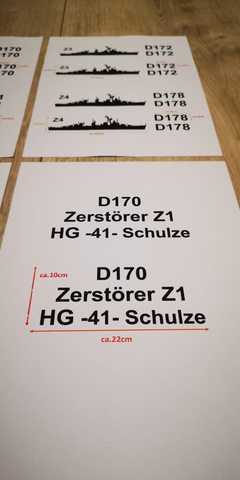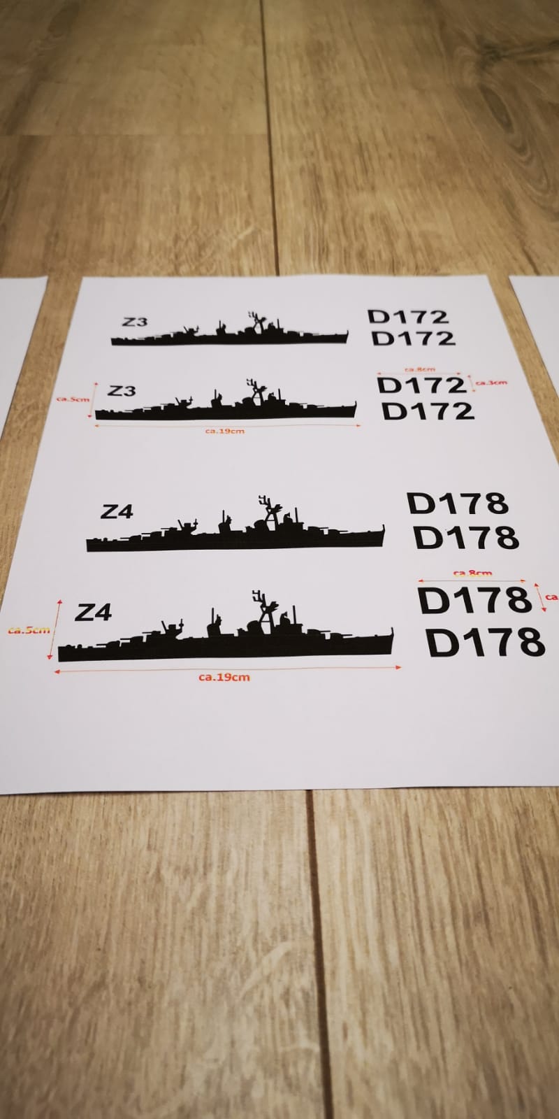 Aufkleber Zerstörer Fletcher- Klasse Z1-Z6 plus 2x Hullnumber