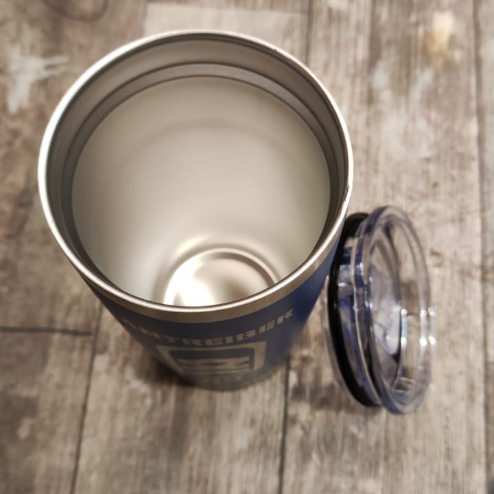 Taza de acero inoxidable con insignia de rango y serie de servicio.