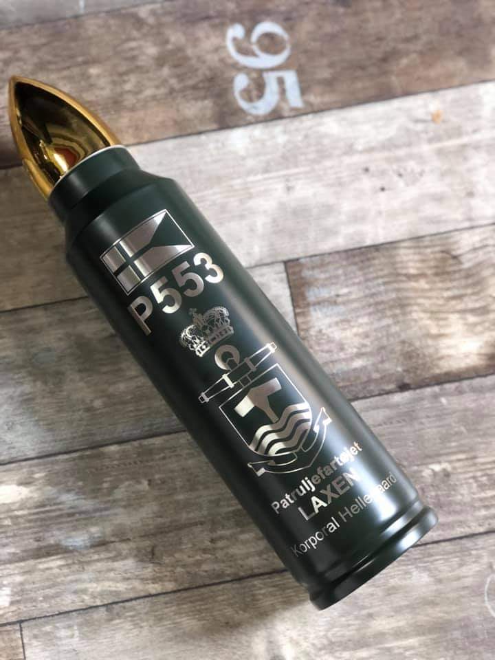 P553 Laxen - Termo de 1 litro con escudo de armas y número de casco
