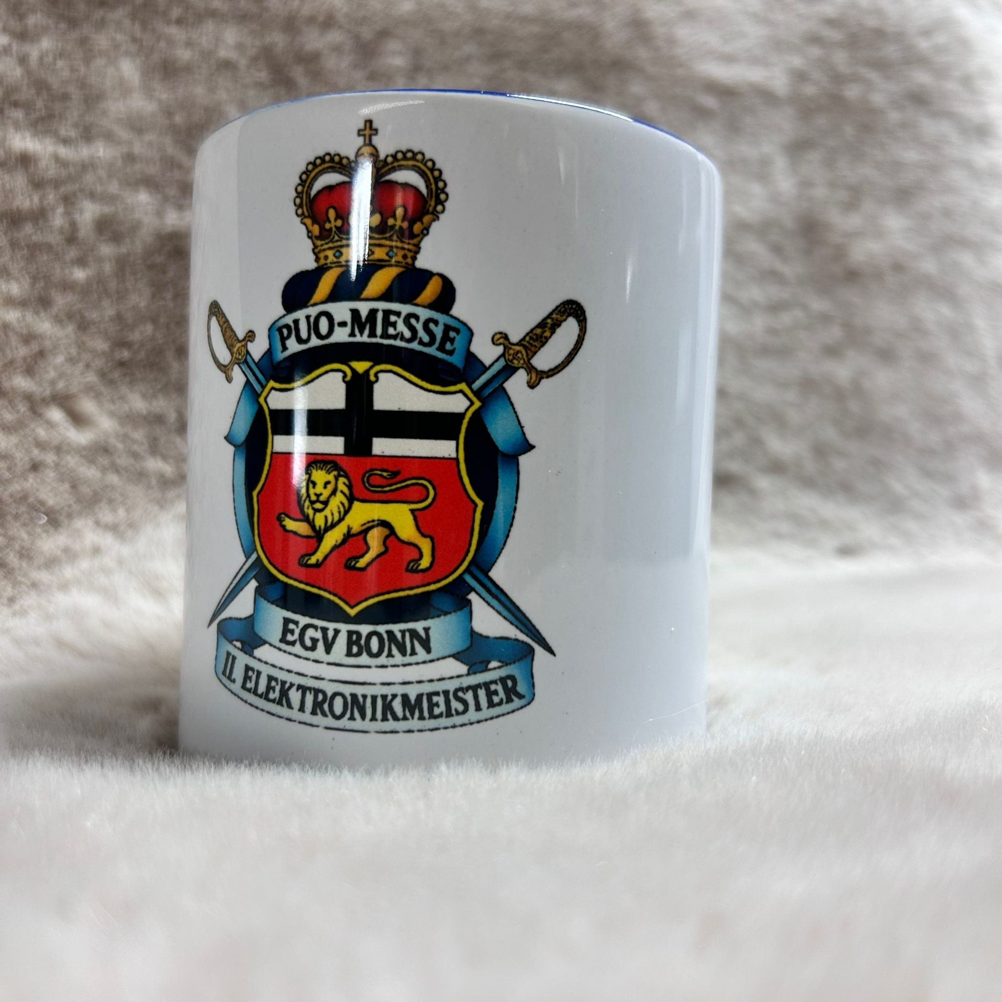 Diese hochwertige Keramiktasse präsentiert das Wappen der PUO-Messe EGV BONN und verbindet klassische Eleganz mit funktionalem Design. Außen in reinem Weiß gehalten, bietet die Tasse innen ein kontrastreiches Navyblau, das das Wappen stilvoll hervorhebt. Ideal für den täglichen Gebrauch oder als Sammlerstück.