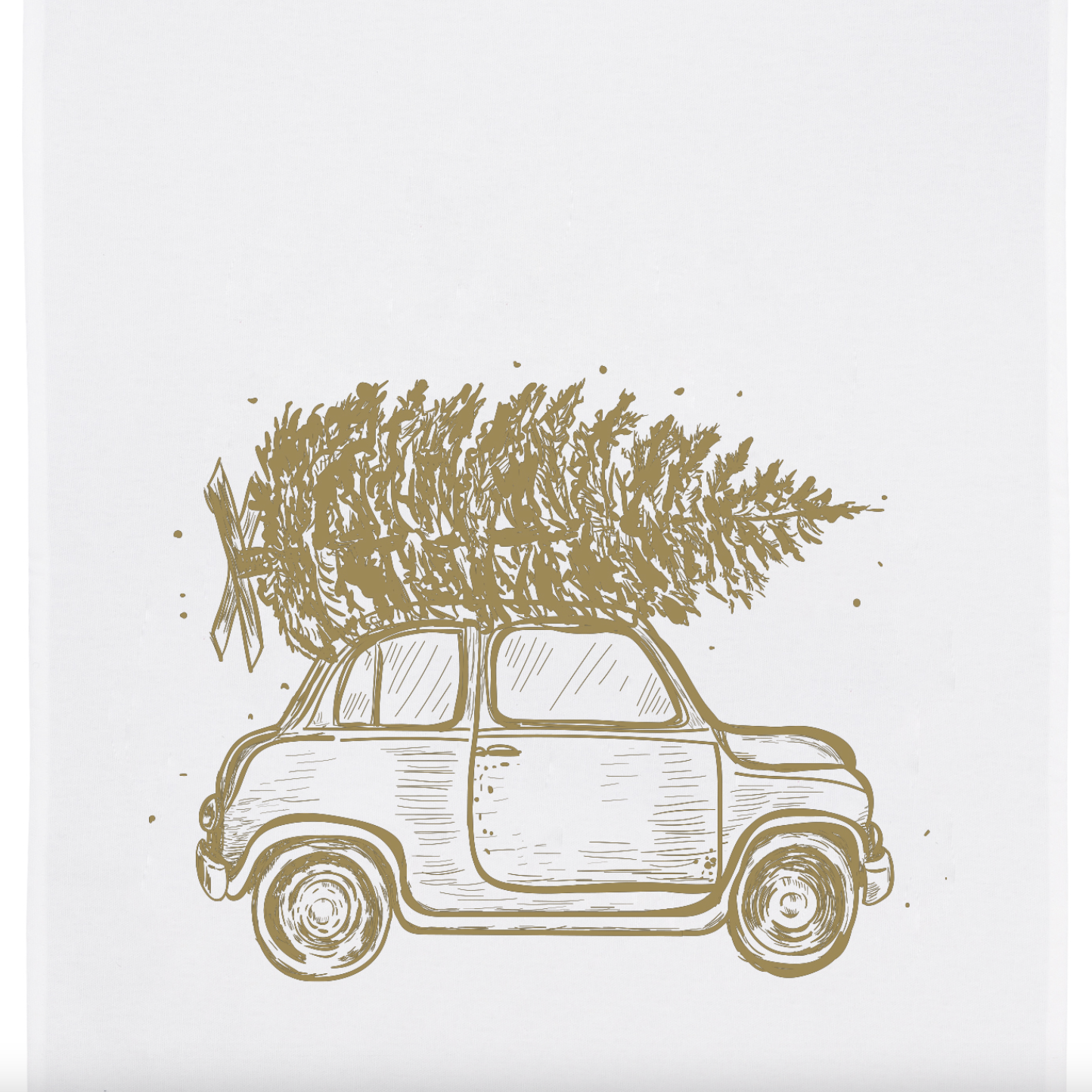 Paño de cocina blanco, ÁRBOL DE NAVIDAD, dorado