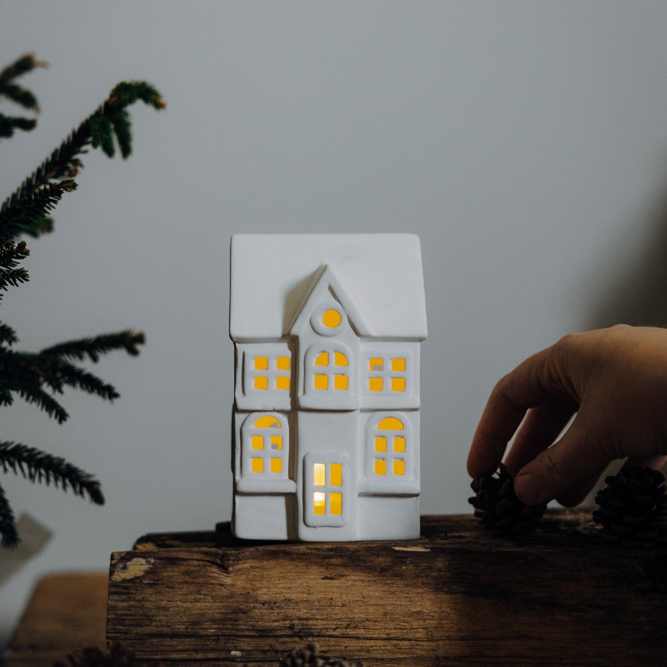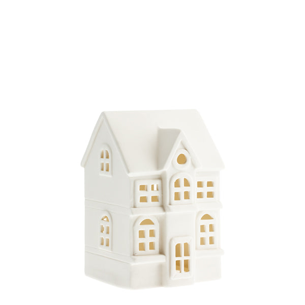 Portavelas realizado en cerámica mate. BYN es la serie de casas cerámicas que ofrecen infinitas posibilidades de combinación. Puedes colocar nuestras casas de cerámica juntas en la mesa auxiliar y crear un pueblo de casas iluminadas colocando una cadena de luces en su interior. Las diferencias de forma y tamaño de las casas permiten crear una dinámica, independientemente de que se opte por combinar tres o nueve casas. Coloca el pueblo en un lugar con mucho espacio y se convertirá en el centro de atención de la estancia.