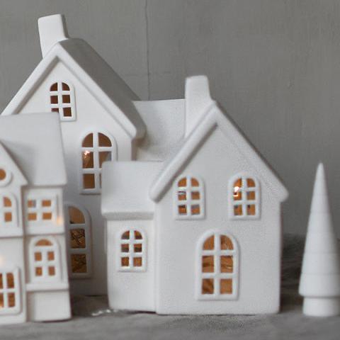 BYN es la serie de casas cerámicas que ofrecen infinitas posibilidades de combinación. Puedes colocar nuestras casas de cerámica juntas en la mesa auxiliar y crear un pueblo de casas iluminadas colocando una cadena de luces en su interior.