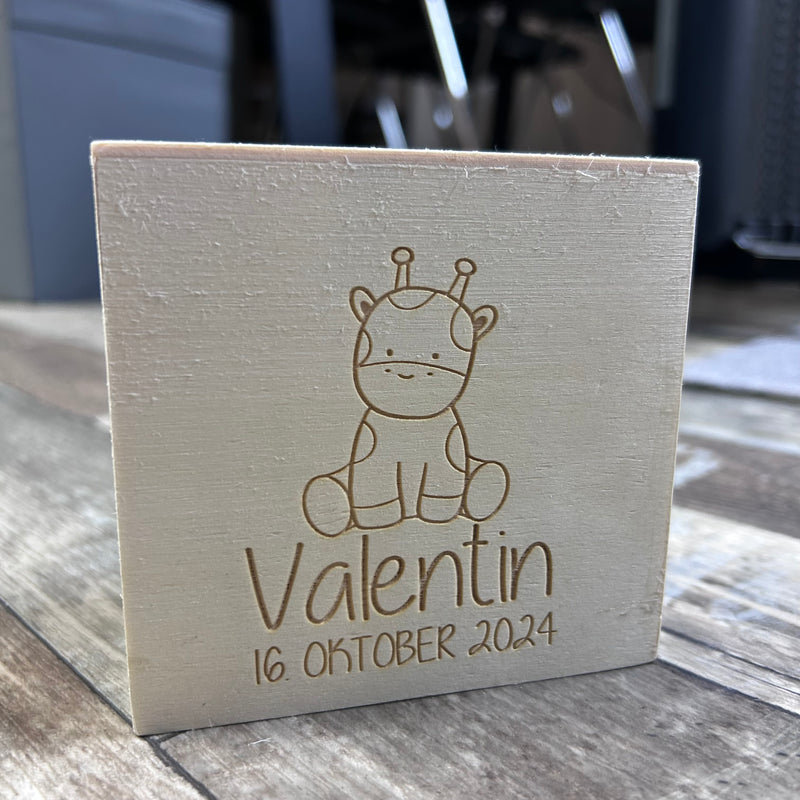 Spardose aus Holz mit Lasergravur - Name, Geburtsdatum & Tiermotiv
