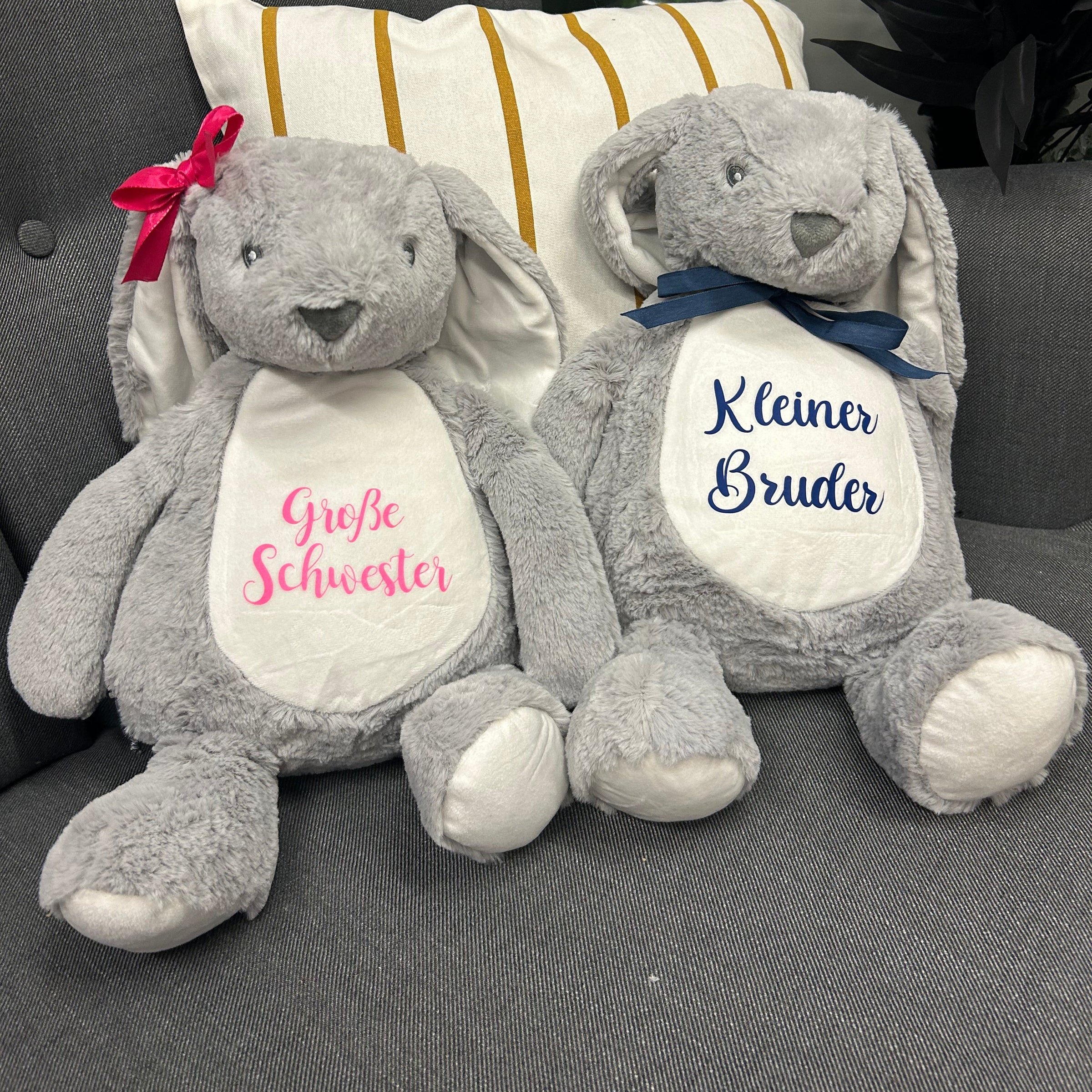 Die kuscheligen Hasen der beliebten Mumbles Kollektion trägt den Namen des neuen Erdenbürgers auf seinem Bauch.