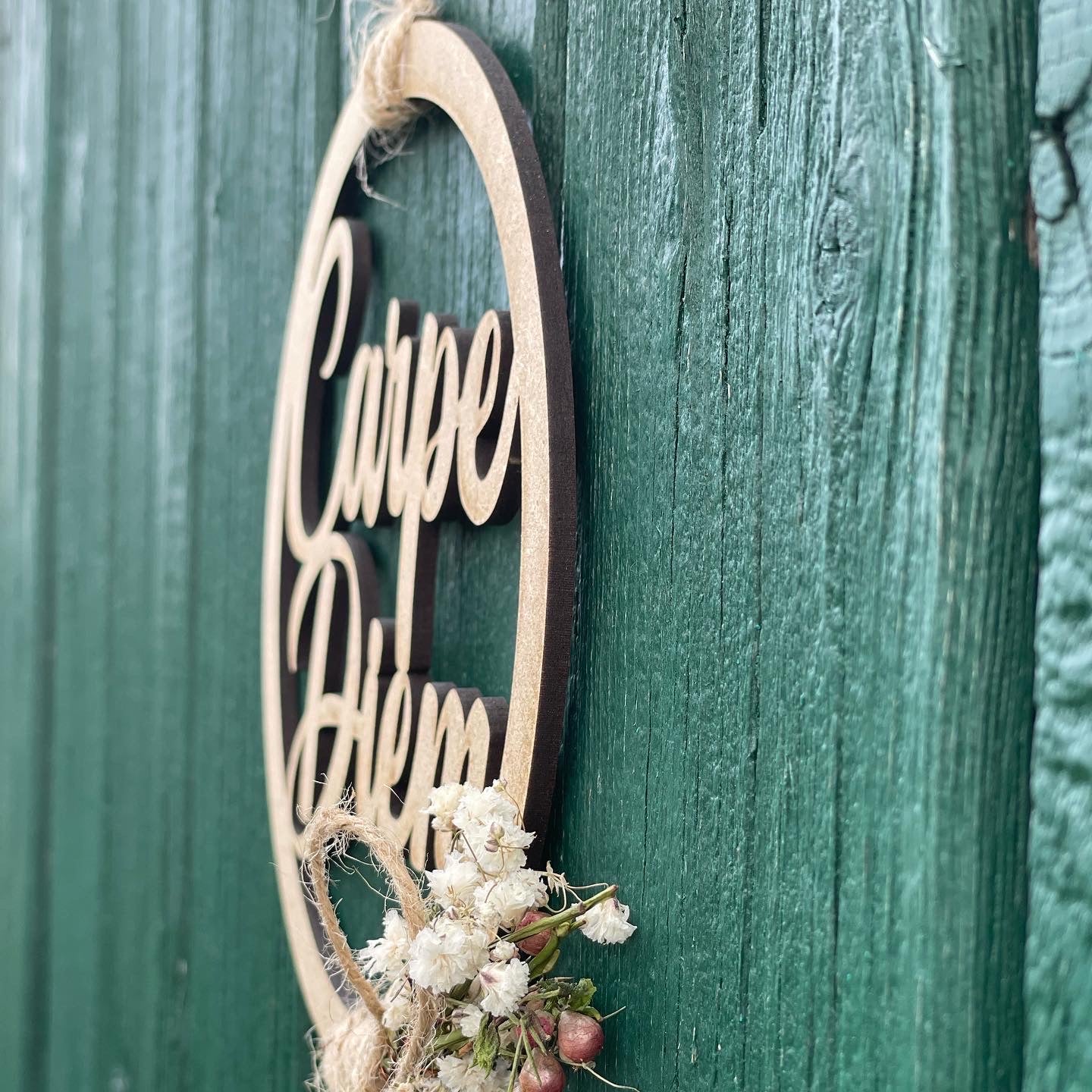 "Nutze jeden Tag! mit dem dekorativen "Carpe Diem" Hoop mit einem Durchmesser von 15cm und aus Holz gefertigt, lässt er sich leicht aufhängen und erinnert Sie täglich daran, den Moment zu ergreifen. Perfekt als Dekoration, um positiv durch den Tag zu gehen und das Leben zu genießen.